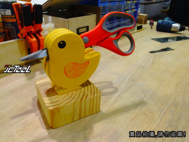 剪刀插進去嘴巴跑出來了,大功告成小鴨剪刀收納座,完成收工!