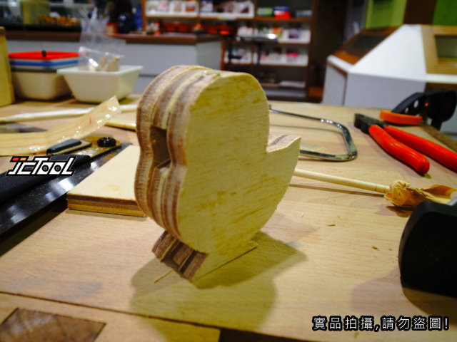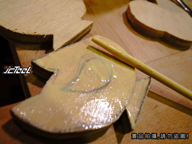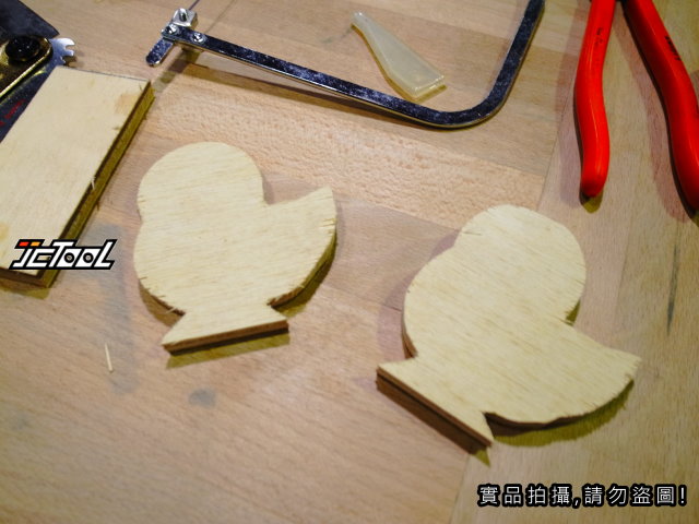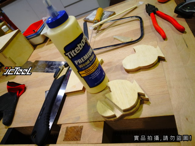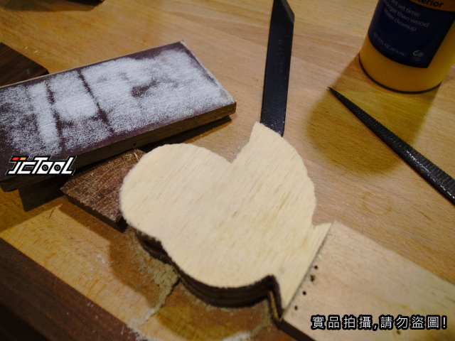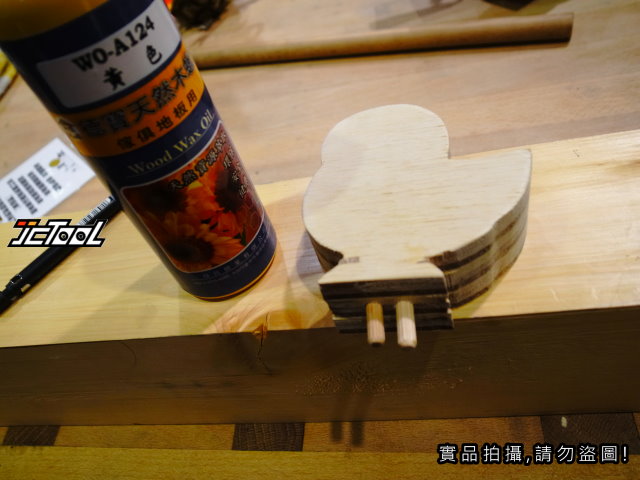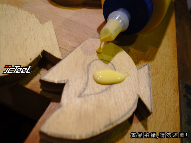 完成後塗點太棒膠塞入木釘,小鴨+底座組合後夾具加壓