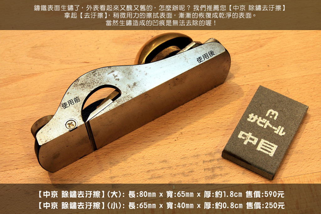 中京 去污擦,有點鏽掉的西式鉋刀本體磨磨看試試看 效果還不賴,中大型機械的鑄鐵面研磨處理也一樣好用喔!