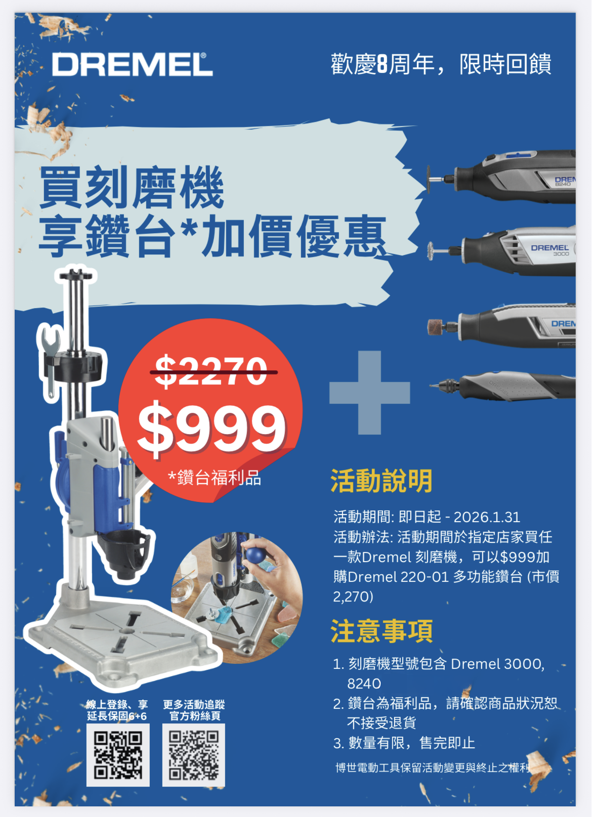 ‧對應多種DREMEL專用配件