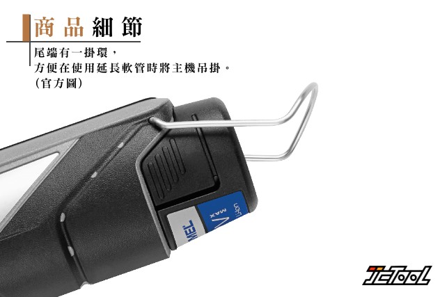 尾端有一掛環,方便在使用延長軟管時將主機吊掛。