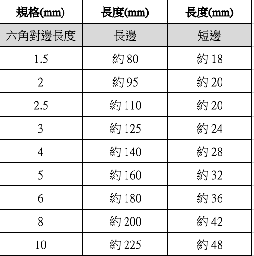 板手規格(mm):1.5,2,2.5,3,4,5,6,8,10