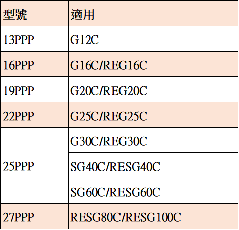上下護套為一組販售,使用型號請參考下方規格表對應F夾型號