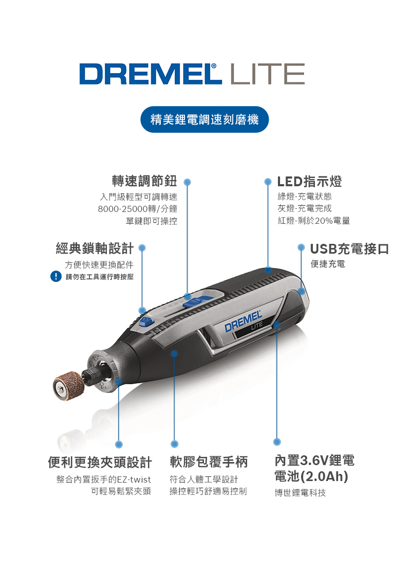 DREMEL 精美 充電式 刻磨機 3.6V 7760