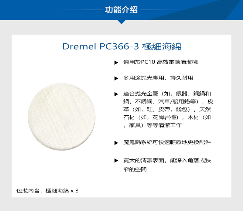 DREMEL VERSA 清潔海綿(極細) PC366-3