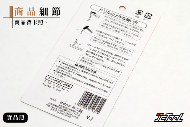 鑽頭規格:φ2.0、2.5、3.0、3.2、3.5、4.0、4.5、4.8、5.0、6.0 mm。