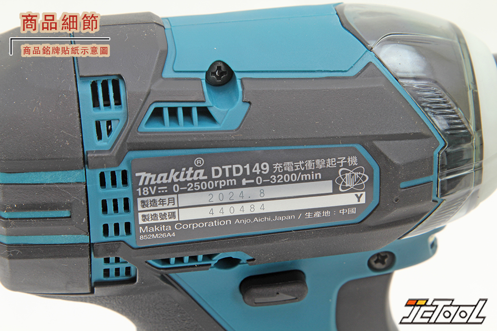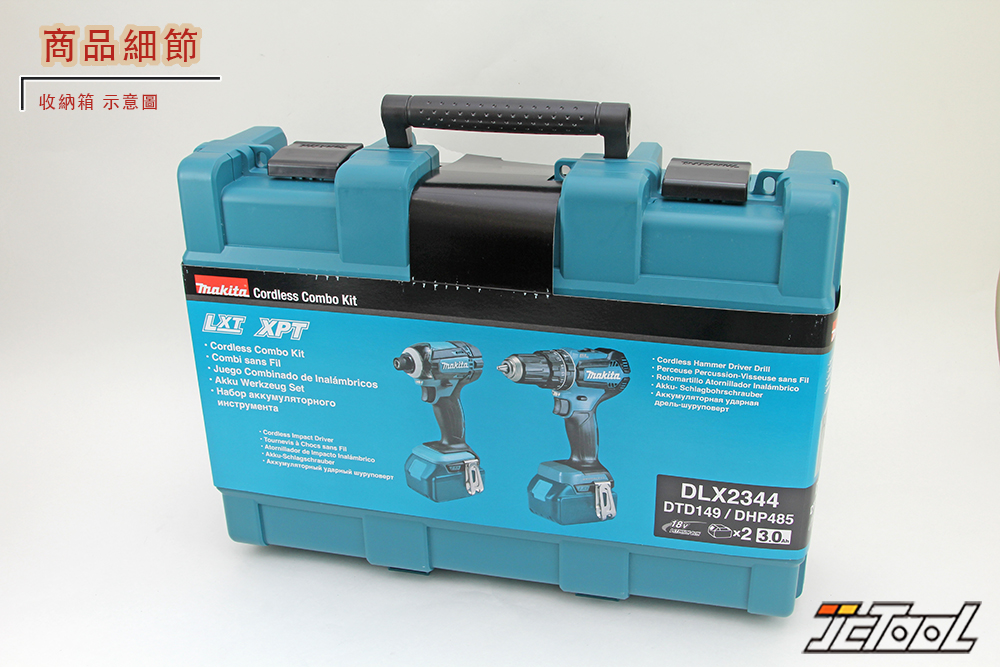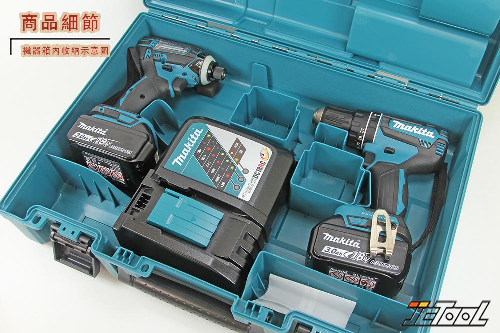 附件:DTD149*1、DHP485*1、18V 3.0A*2(安裝在機器上)、DC18RC充電器*1、工具箱*1