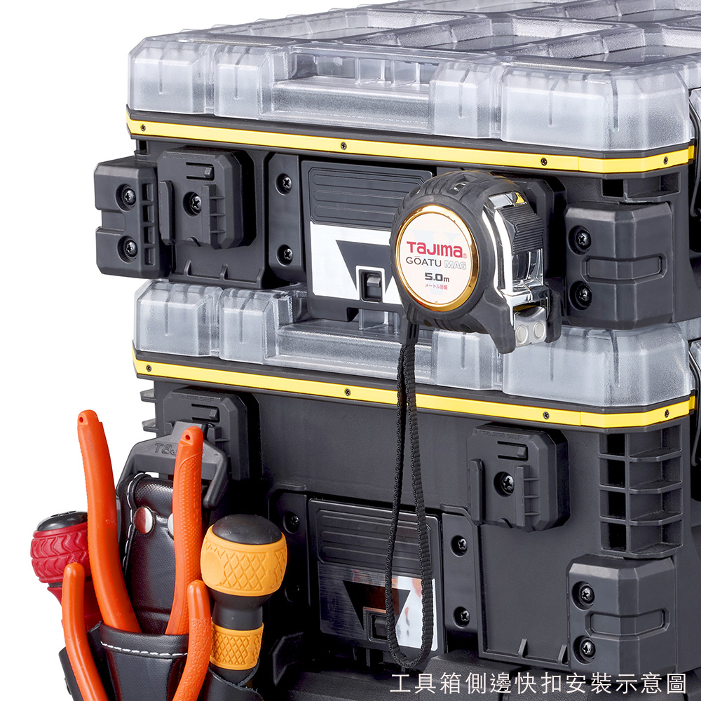 具備防傾倒滑落設計,可堆疊牢固連結。