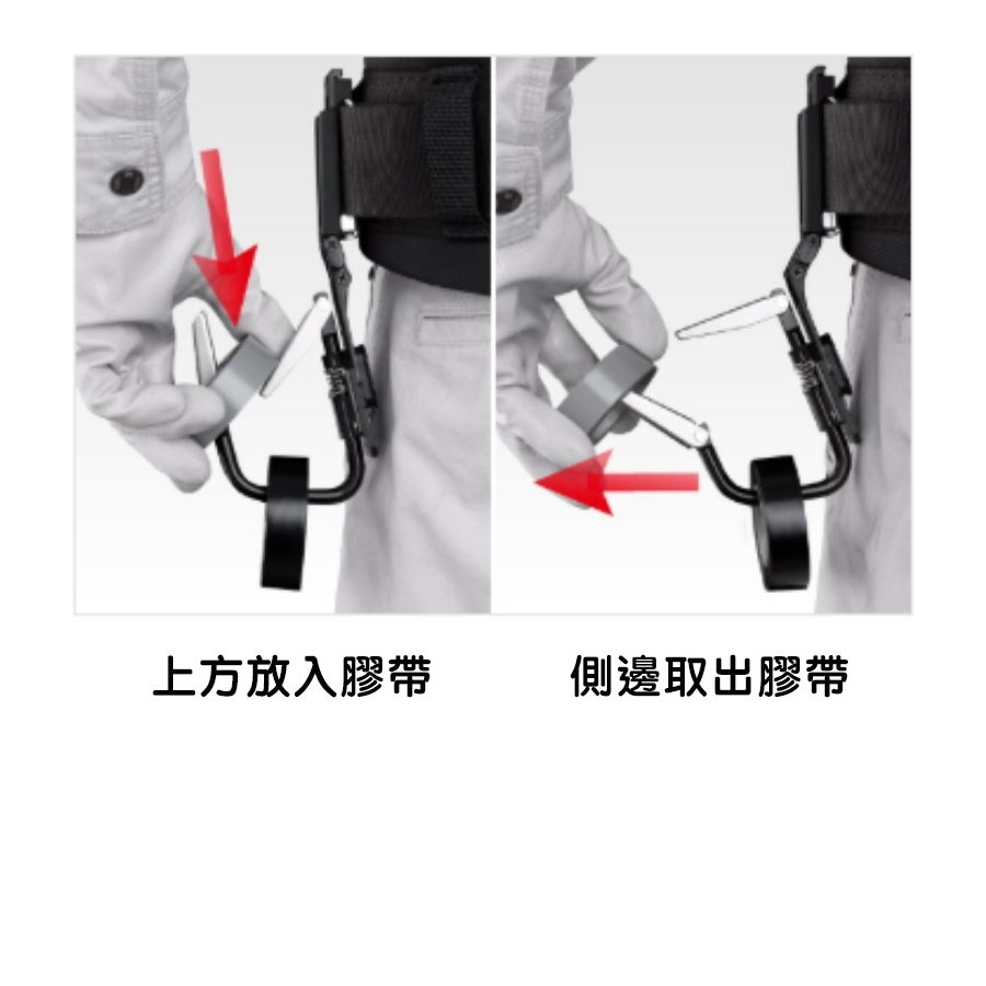 雙閥門式設計,上方放入膠帶,側面取出膠帶,方便且直覺。