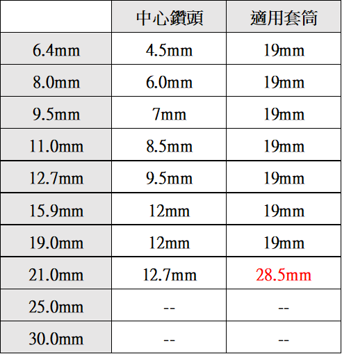 3.19mm(6分)以上,建議配合落地型角鑿使用